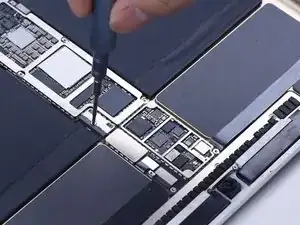 Удалите винт батареи на плате.