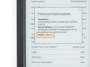 Значение VCOM, зарегистрированное в вашей электронной книге, будет равно этому трехзначному числу, умноженному на 1000.