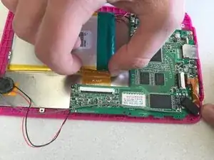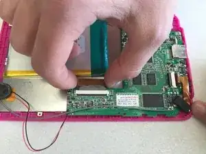 Чтобы отсоединить кабель, используйте лопатку, чтобы отжать маленькую защёлку, удерживающую ленточный кабель.