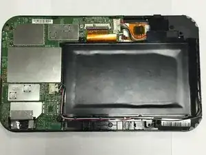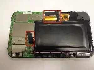 Аккумулятор — это черный прямоугольник посередине устройства. У устройства есть два жгута проводов, прикрепленные к нему: один чуть выше аккумулятора и один чуть правее.