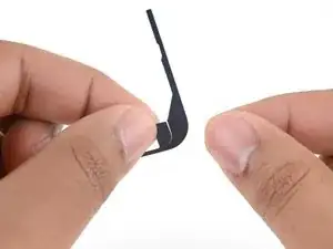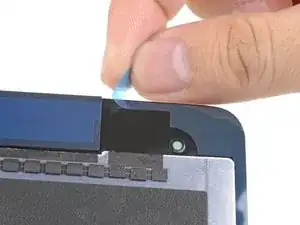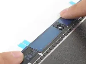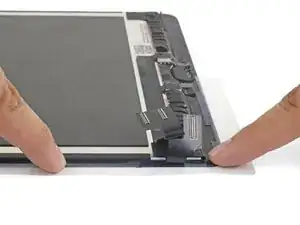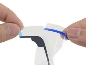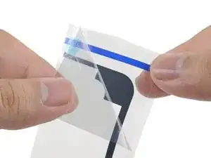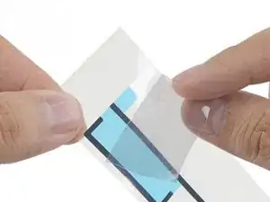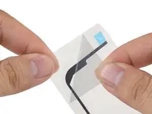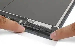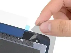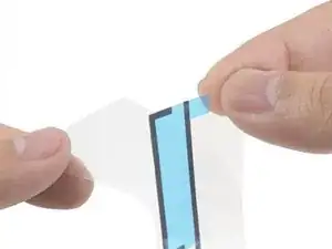 Начиная с одного угла, уложите клеевую полоску на дисплейный модуль и прижмите её на место.