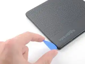 Поверните медиатор плоско под заднюю крышку и поверните его вокруг нижнего правого угла, чтобы освободить его защёлки.
