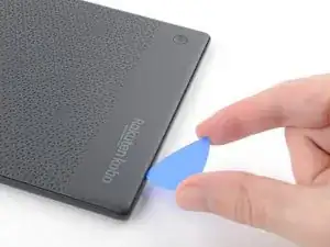 На этом этапе вы должны смочь захватить заднюю крышку и освободить оставшиеся защёлки. Если нет, подведите медиатор под периметр задней крышки, пока не сможете захватить край.