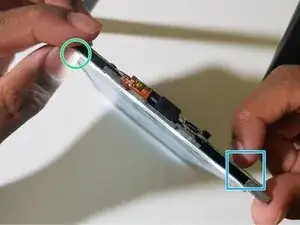Аккуратно подденьте рамку вокруг экрана пластиковым инструментом для вскрытия. Начинайте с углов и продвигайтесь вдоль краёв, пока не вернётесь к начальной точке.