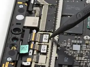 Используйте заостренный конец лопатки, чтобы отключить разъем фронтальной камеры от его гнезда.