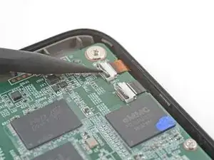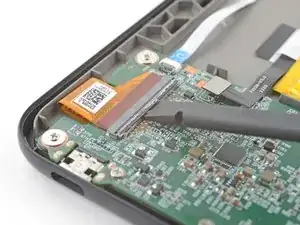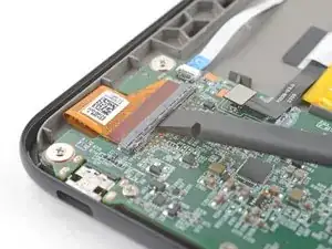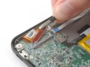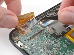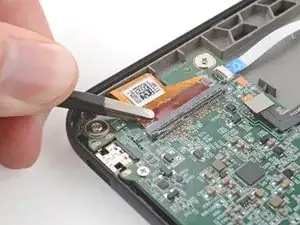 Используйте тупоконечные пинцеты, чтобы захватить угол кабеля дисплея, ближайший к порту зарядки.