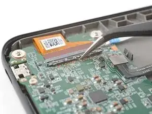Используйте заострённые пинцеты, чтобы отодрать покрытие вокруг фиксирующей планки и её петли на ZIF‑разъёме.