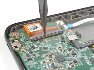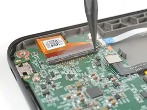 Используйте наконечник лопатки, чтобы приподнять фиксирующие язычки ZIF-разъёмов.
