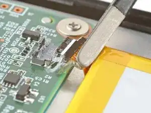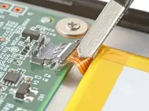Подденьте разъём лопаткой, чтобы отделить оставшееся покрытие и отключить батарею.