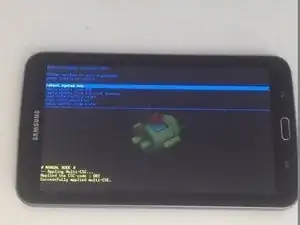 Когда вы пытаетесь выполнить сброс к заводским настройкам через меню восстановления Android, вы не можете нормально перемещаться. Это распространенная проблема с Samsung Galaxy Tab 3 7.0. Светящийся курсор перемещается только если вы нажмете кнопку громкости дважды - тогда он будет перемещаться по двум меню.