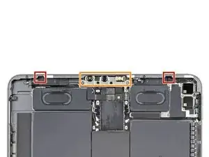 Верхний край iPad содержит модуль камеры, два датчика окружающего освещения, датчик приближения и передний микрофон. Эти компоненты хрупкие и легко повреждаются, если монтажная лопатка вставлена слишком глубоко. Отделяйте клей только в отмеченных местах, чтобы избежать повреждений.