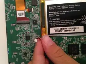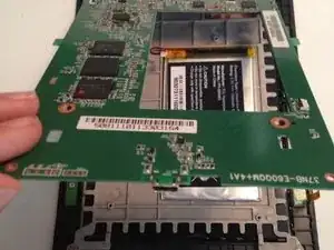 Теперь удалите аккумулятор, просунув лопатку под него и разрушив клейкое соединение.