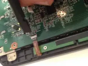 Выкрутите винты, помеченные красным, которые крепят системную плату к внешнему пластиковому корпусу.