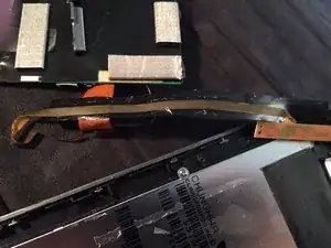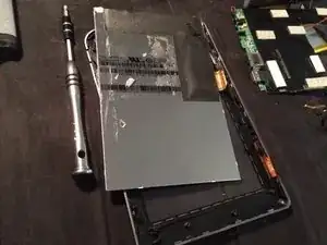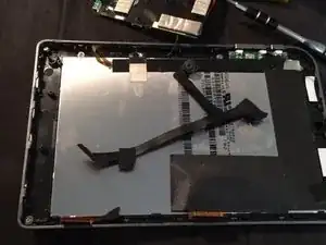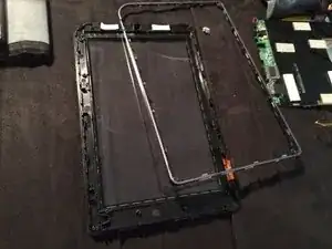 Снимите два маленьких винта и шайбы с левой стороны задней части экрана, удалите различные куски ленты и аккуратно вытяните экран из корпуса. Следите, чтобы не повредить ленточные разъёмы экрана и дигитайзера.