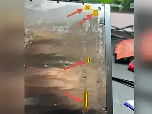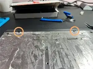Начните со снятия двух серебристых винтов в оранжевых областях.
