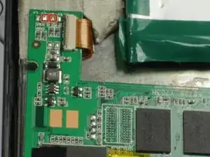 Припаяйте красный провод левого динамика к контактному элементу, помеченному L- на материнской плате.