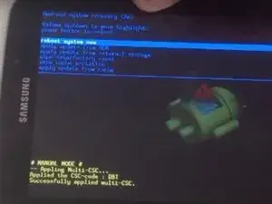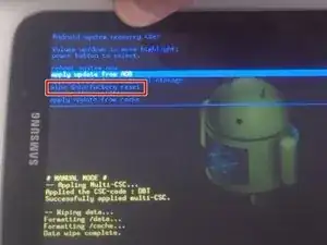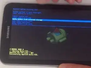 Когда появится логотип Samsung Galaxy Tab 3, отпустите только кнопку питания, продолжая держать кнопку «Домой» и кнопку увеличения громкости. Теперь вы видите меню восстановления Android.