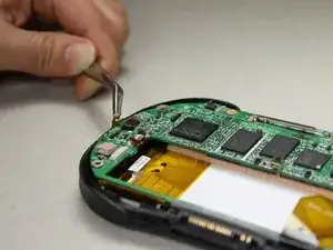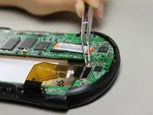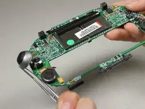 Используя пинцет, снимите аналоговый стик, потянув прямо вверх от его узла на материнской плате.