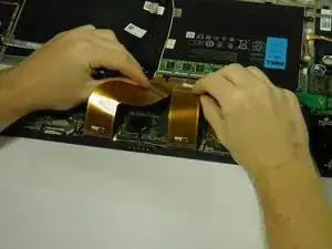 Отключите кабели экрана и материнской платы медного цвета и уберите их под устройство, чтобы избежать дополнительных хлопот.