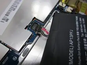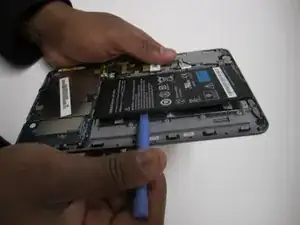 Используйте пластиковый инструмент для открывания, чтобы поддеть аккумулятор и оторвать его от задней панели. Клей очень прочный, поэтому при удалении применяйте усилие.