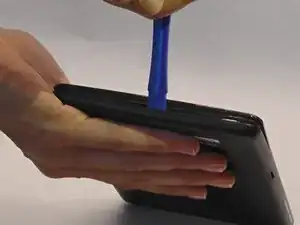 Начните отщелкивать переднюю панель от задней с любой стороны планшета. Аккуратно пройдитесь закрепляемым инструментом вокруг планшета.