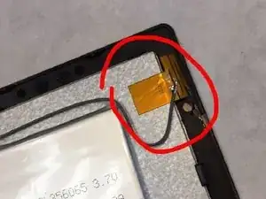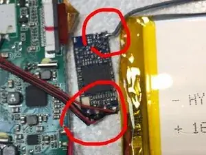 Аккумулятор подключен двумя способами; один провод подключён к экрану для поддержки светодиодов фона экрана. Осторожно отпаяйте провод, не повредив соединение аккумулятора с экраном.