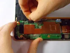 Осторожно подденьте аккумулятор с помощью инструмента для вскрытия и извлеките его из планшета.