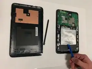 Проведите инструментом для открытия вдоль кромок планшета и поднимайте там, где можете. Возможно, потребуется открыть все стороны, чтобы снять панель.
