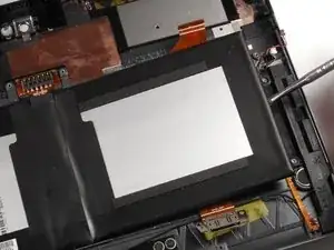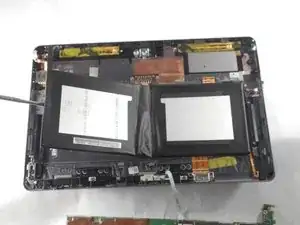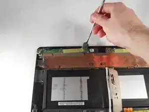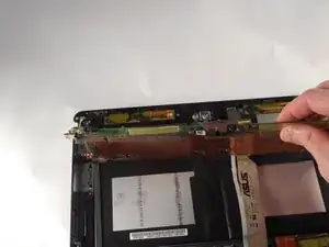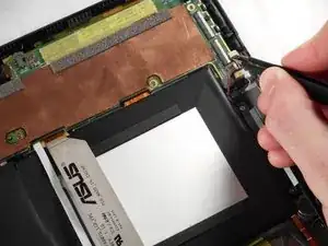 Снимите два провода на правой стороне планшета с помощью остроконечных пинцетов для точной работы.