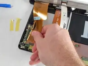 Поднимите экран, чтобы увидеть внутреннюю часть планшета.