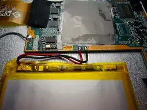 Будьте осторожны, чтобы не повредить провода, соединяющие аккумулятор с платой или сенсорным экраном под аккумулятором.
