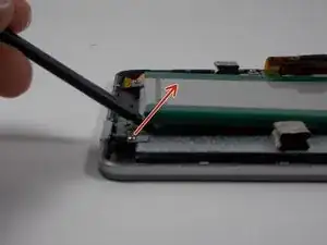 Учитывая расположение шлейфа, используйте пластиковую лопатку, чтобы поддеть и снять аккумулятор.