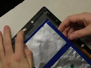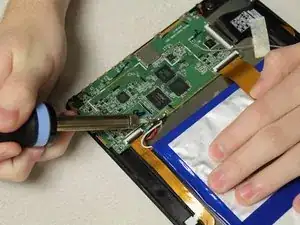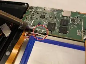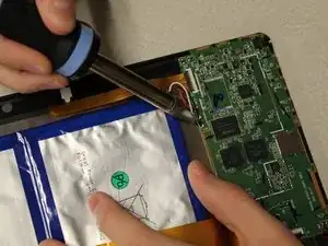 Используя инструмент для вскрытия, отделите аккумулятор от планшета.