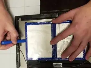 Следуйте по краю аккумулятора, чтобы ослабить клей.
