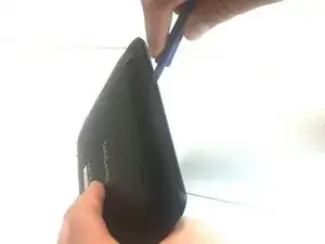 Найдите зазор, разделяющий переднюю и заднюю панели. Затем возьмите пластиковый инструмент для вскрытия и вставьте клиновидную часть инструмента в зазор.
