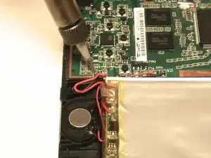 Используйте паяльник, чтобы расплавить припой, который соединяет провода аккумулятора с материнской платой.