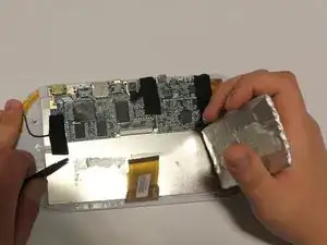 Теперь извлеките аккумулятор. Аккумулятор должен быть еще отделен от ЖК-дисплея, если нет, попробуйте поддеть его снова.