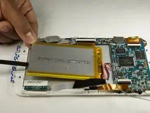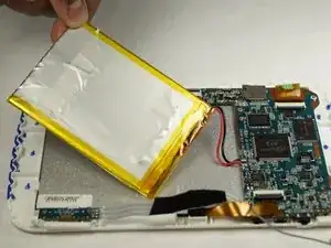 Осторожно отсоедините аккумулятор от экрана. Это может быть немного сложно, так как аккумулятор удерживается на задней части экрана с помощью клея.