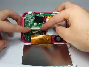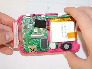 Далее снимите две боковые ручки устройства. Теперь Вы можете вынуть материнскую плату, динамик и аккумулятор вместе из устройства.