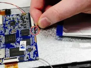 Вы можете проверить одно из точек соединения между аккумулятором и материнской платой, чтобы убедиться, что оно плотно соединено (как и должно быть), используя пластиковый лопаточный инструмент. Для замены аккумулятора удалять этот провод не обязательно.
