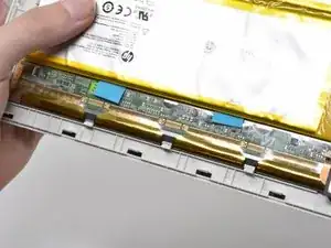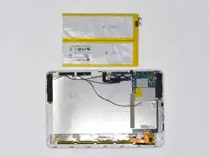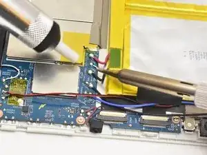 Аккумулятор прикреплён к задней части дисплея устройства. В этом руководстве вы отвёртываете соединения аккумулятора от материнской платы и снимаете аккумулятор с устройства. Это руководство требует пайки; будьте осторожны и проветривайте помещение.