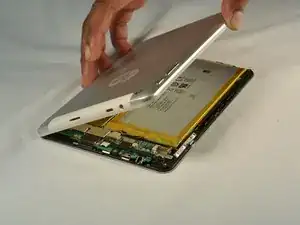 Проведите пластиковым одним ножом по всем 4 сторонам планшета, чтобы отделить заднюю крышку.