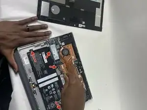 Отключите ленту кабеля сенсорного экрана от материнской платы.