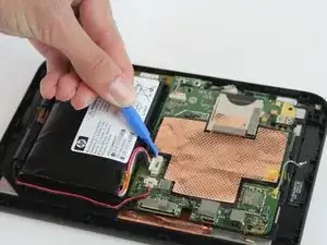 Удалите аккумулятор с помощью пластикового инструмента для открывания.