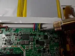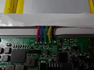 Аккумулятор подключён к материнской плате пятью проводами, припаянными к ней.