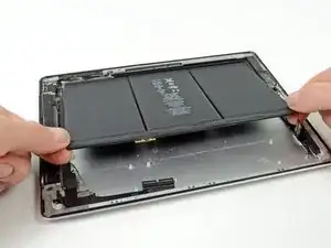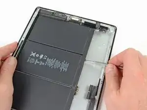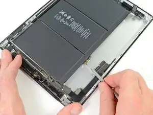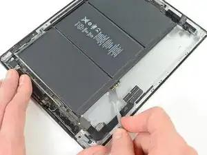 Осторожно приподнимите левую сторону батареи, поворачивая её в сторону правой части iPad.