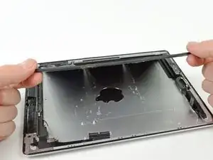 Проведите пиковый инструмент вдоль верхнего края iPad, слегка выдвигая его, чтобы обойти кронштейн фронтальной камеры.