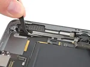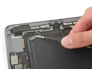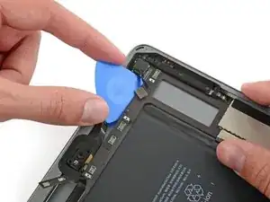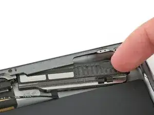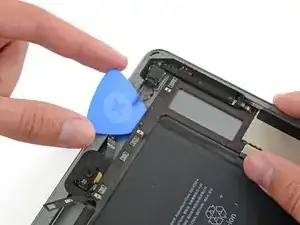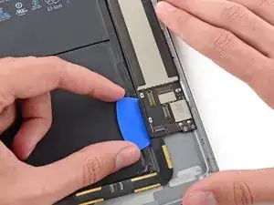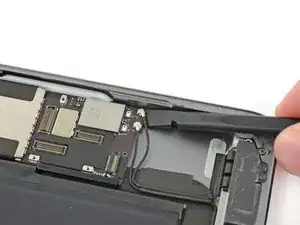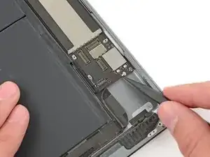 Продолжайте поднимать логическую плату вдоль кромки, ближайшей к батарее, пока не сможете поддеть медиатором дальний край логической платы.