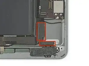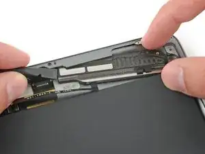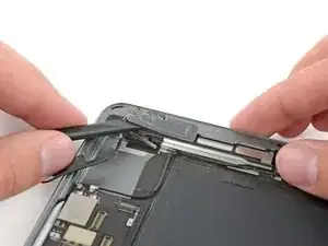 Кабель разъёма Lightning прикреплён к корпусу с помощью клея. Чтобы отсоединить клей, вы будете проводить медиатором между кабелем и корпусом. Будьте очень осторожны, чтобы не перерезать сам кабель разъёма Lightning.