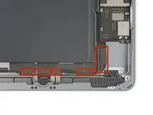 Кабели дисплея расположены примерно на половине расстояния от нижнего края iPad. Прекратите скольжение, когда дойдёте до трёх дюймов от нижнего края iPad.